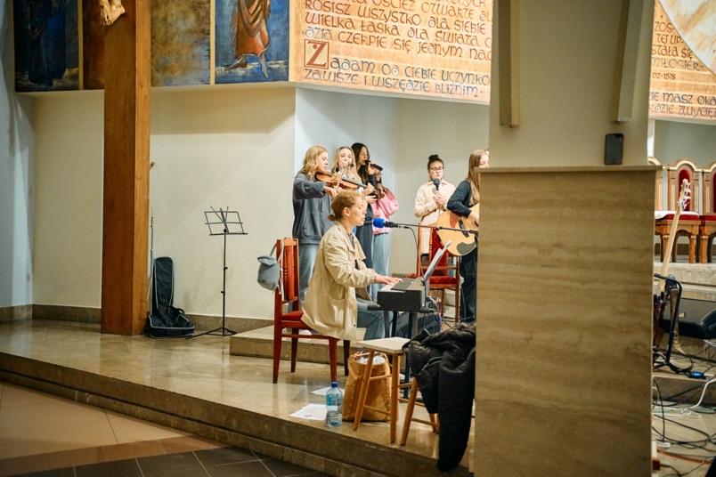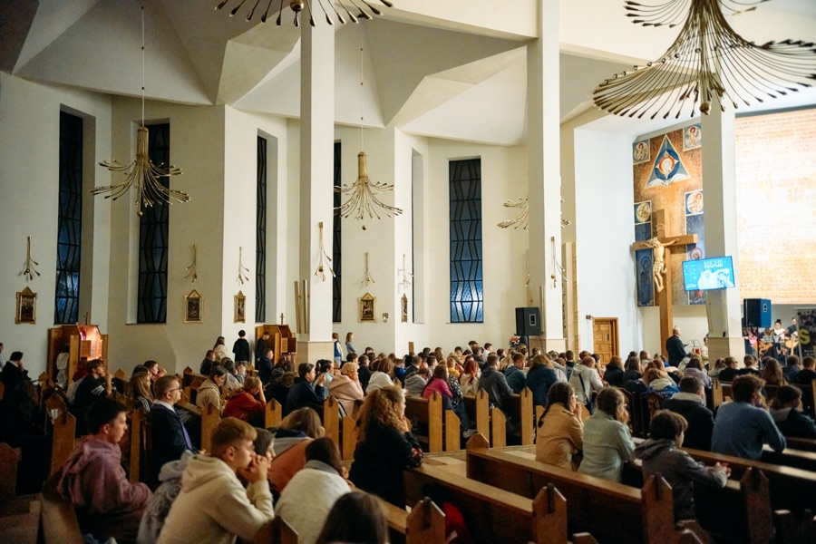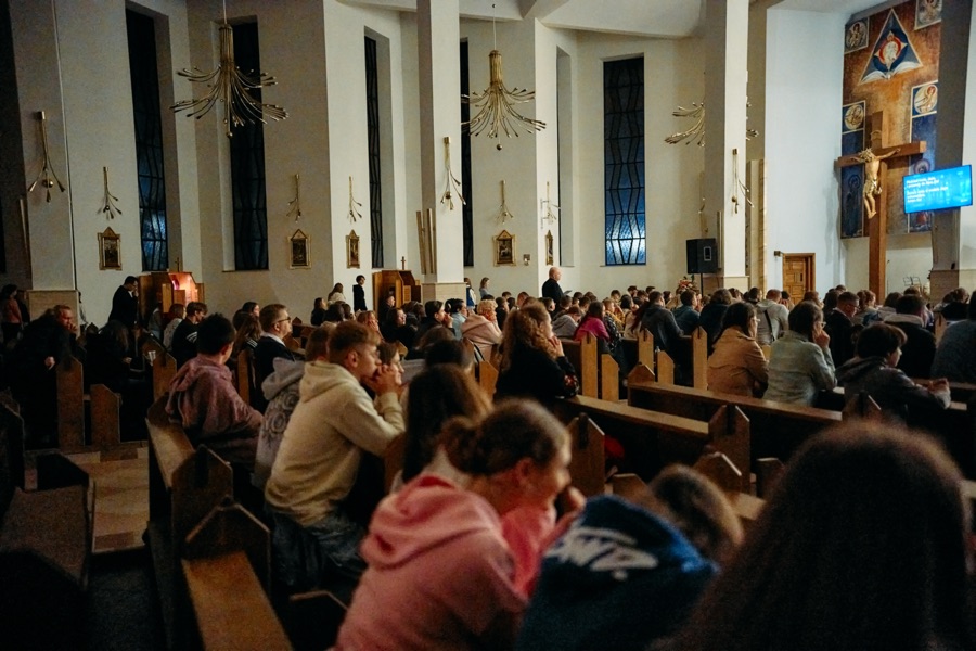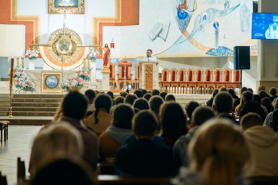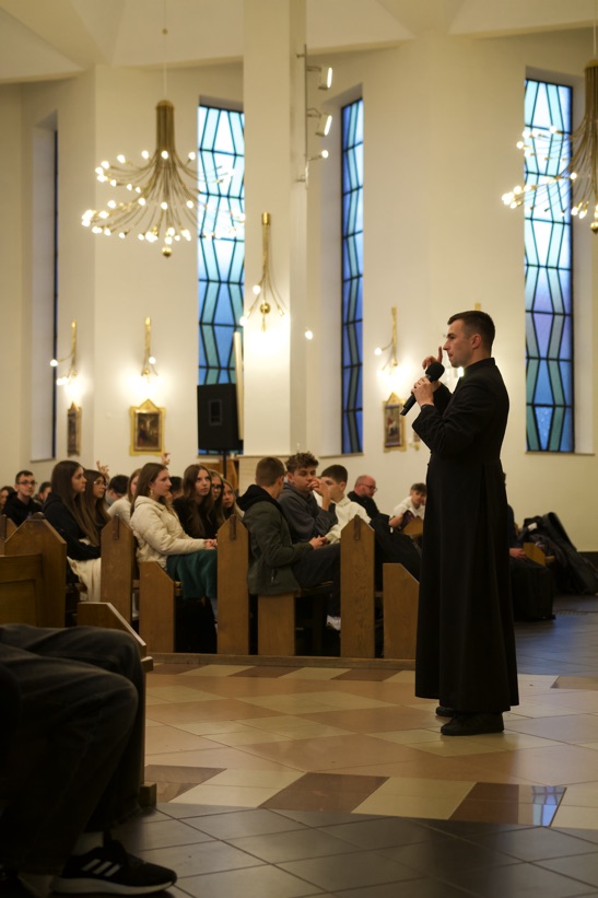 Spotkanie rozpoczęło się o godzinie 18.00. Właśnie na tę godzinę zjechała się większość naszych wspólnot młodzieżowych z niemalże każdej naszej parafii. Przybyło też sporo młodzieży z samego Ostrowca Świętokrzyskiego. W pierwszej części wszyscy mieli okazję zobaczyć się z ludźmi, których wcześniej widzieli na Sercańskich Dniach Młodych, czy na Nocy Nadziei. Pomagały w tym herbata i ciasto przygotowane przez parafian. Po tym czasie odnowionych znajomości młodzi udali się do kościoła. Tam czekali już na nich prelegenci - ks. Sebastian Picur, oraz Karolina i Karol Fromontowie. Dawali oni swoje świadectwo wiary i mówili o tym, jak sami możemy być światłem dla innych.