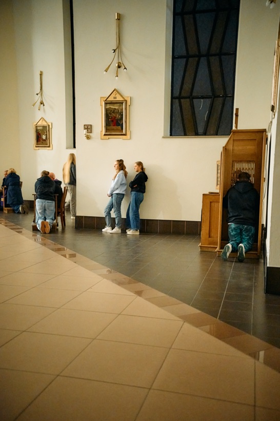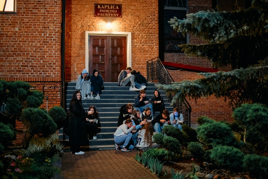 Po części konferencyjnej wszsycy udali się na ciepły posiłek - pomidorówkę z makaronem, tosty i frytki. Znów był czas na zobaczenie się ze znajomy, porozmawianie o konferencjach i marzenie o Sercańskich Dniach Młodych. Po przerwie ks. Karol Milewski SCJ przygotował wszystkich do spowiedzi. Pomogła mu w tym Ola Budzeń, liderka ostrowieckiej wspólnoty RSMu, która opowiadał o swoim przeżywaniu sakramentu pokuty. Całe spotkanie zakończyło się Mszą z uroczystości Bożego Miłosierdzia, odprawioną po północy.