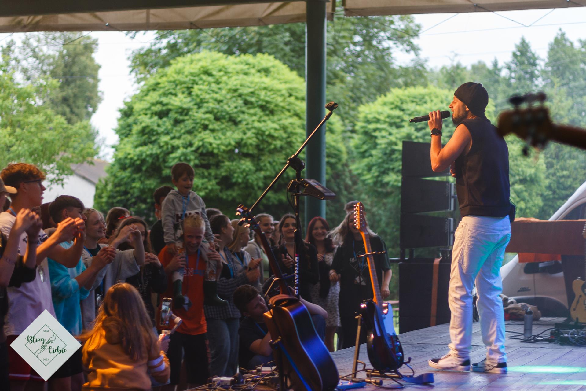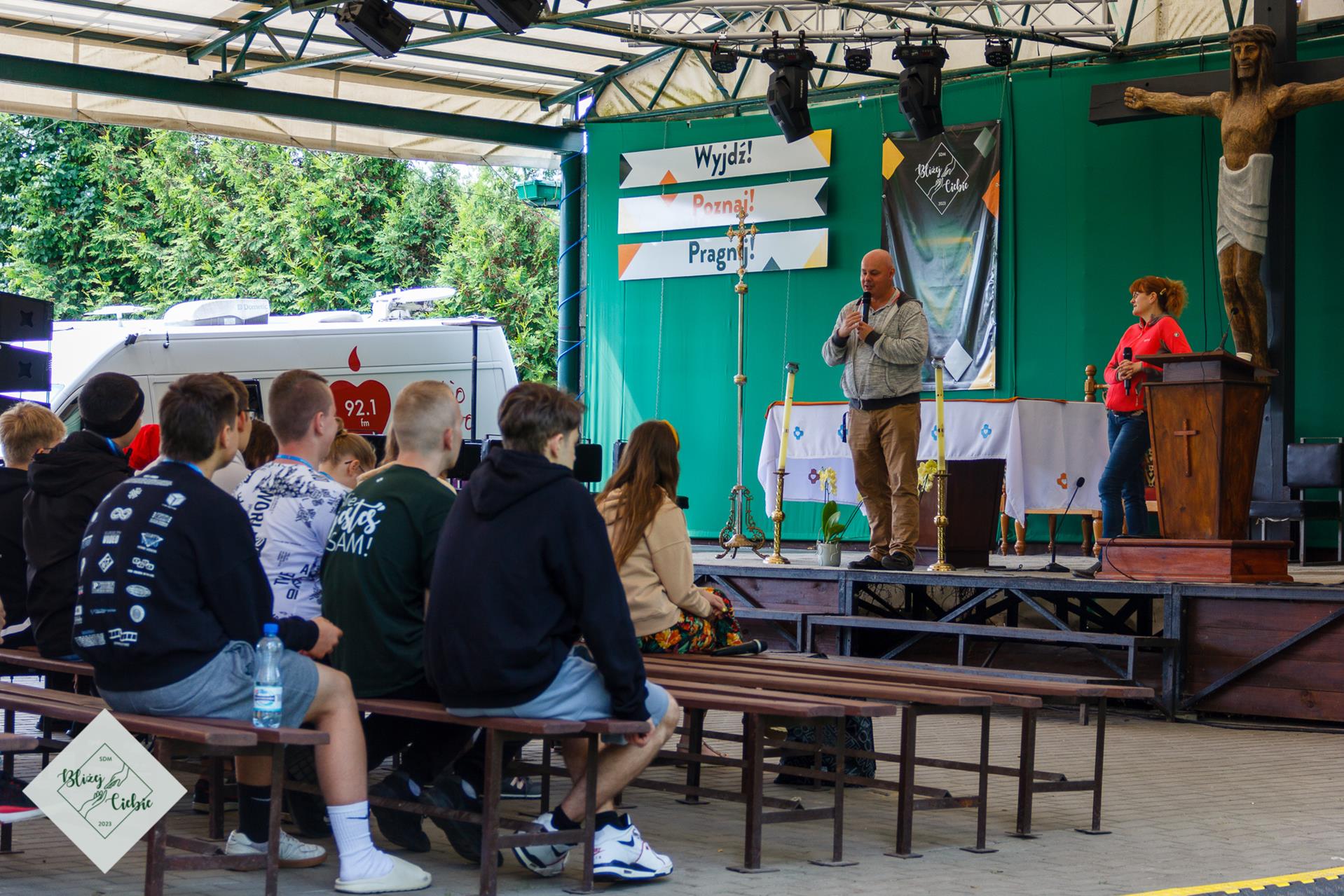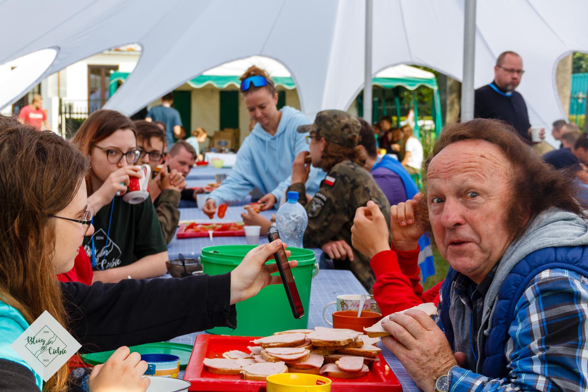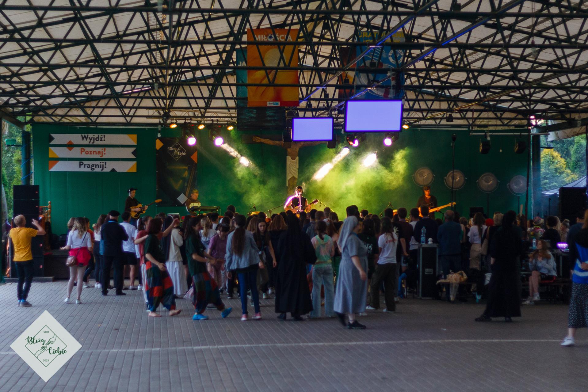Zjedliśmy obiad i pełni energii ruszyliśmy na warsztaty i wspólnotę. Na koniec dnia w rytmie reggae bawiliśmy się na koncercie Damiana Syjonfama. Jak mówi jeden z uczestników: z roku na rok jest coraz lepiej, w tym roku to już w ogóle wspaniale. Świetnie się bawiłem i już nie mogę doczekać się jutrzejszej dyskoteki – dodaje jeden z uczestników spotkanych pod wiatą. Dzień zgodnie z SDMową tradycją zakończył Boski Mario i jego drużyna z filozoficzną opowiastką na dobranoc.