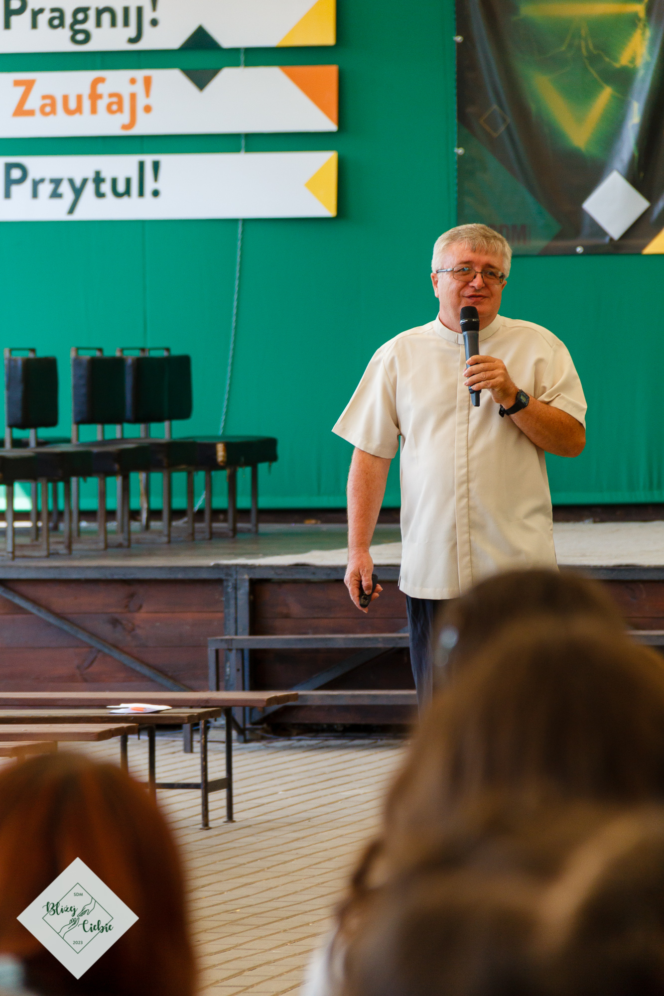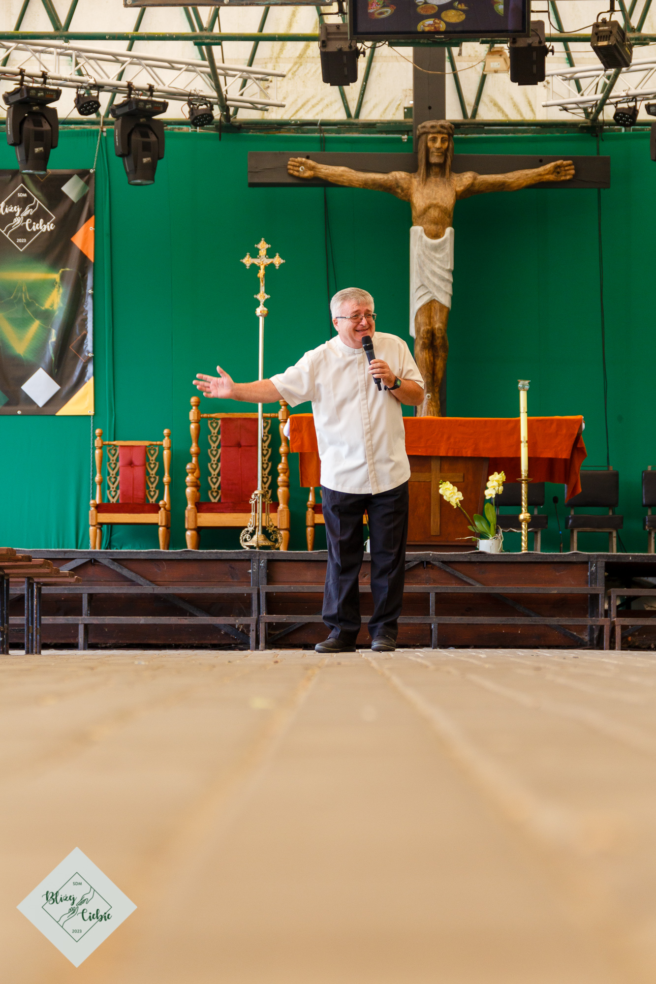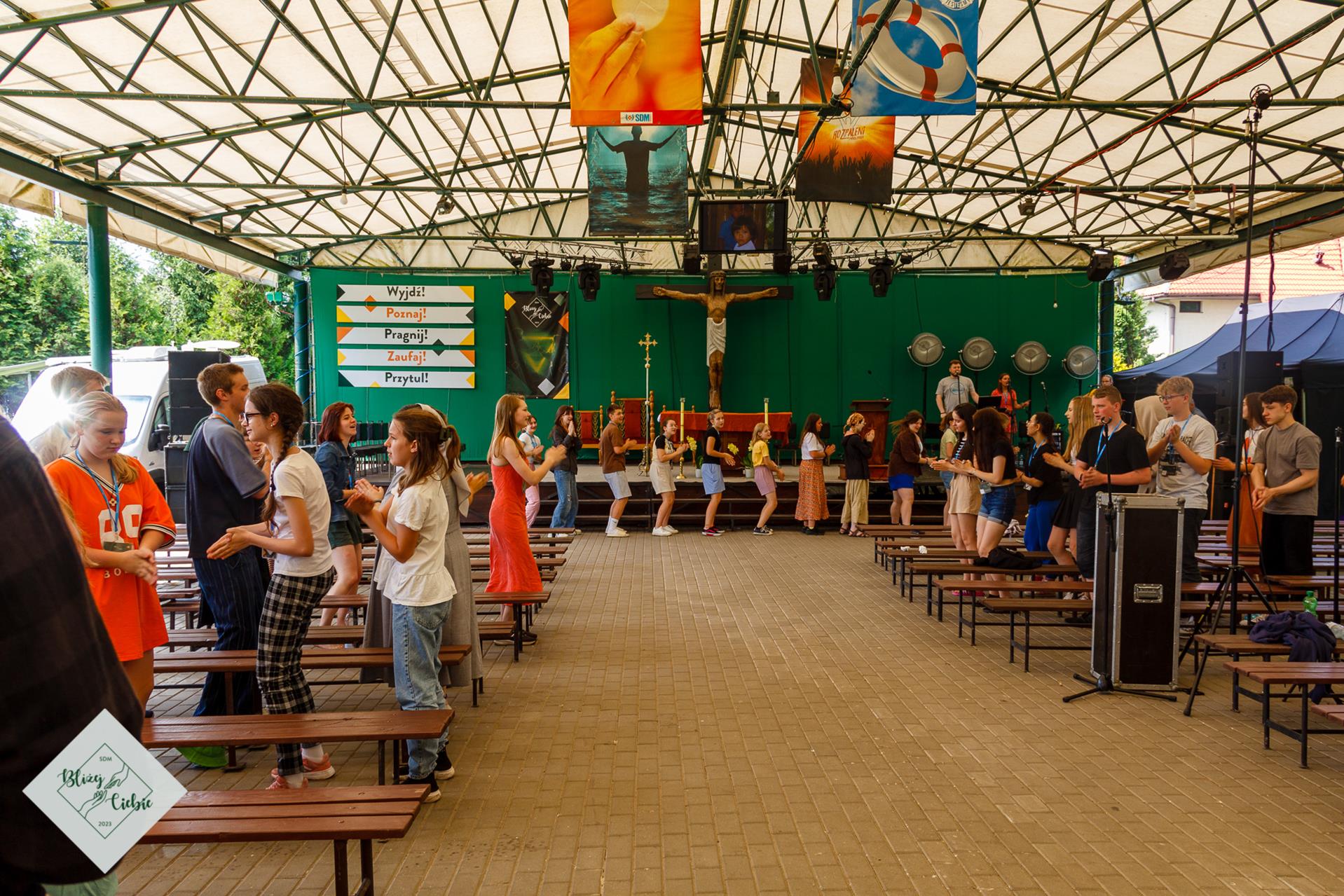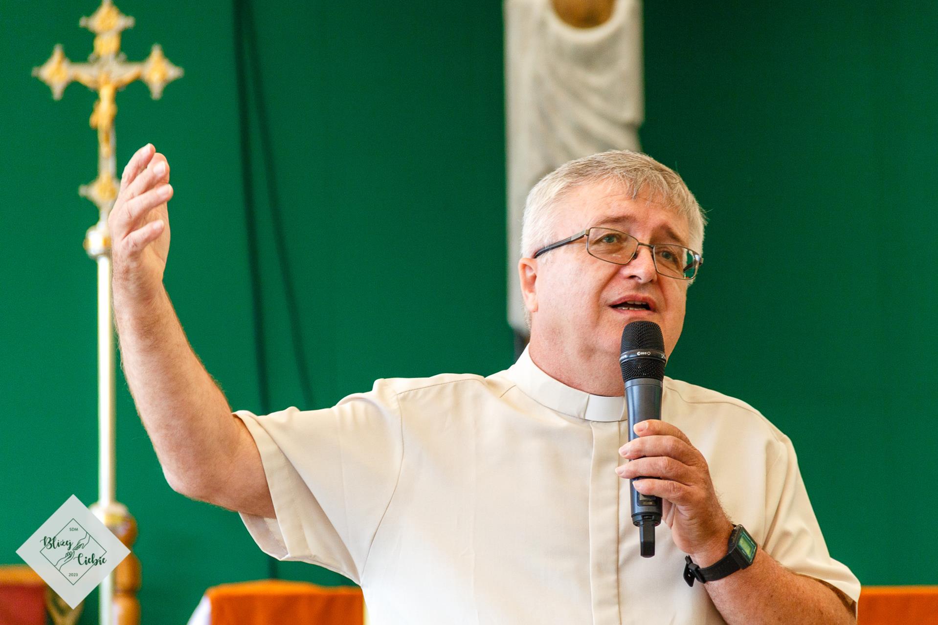 Mszy Świętej przewodniczył ks. Łukasz Grzejda SCJ, a homilię wygłosił ks. Wojtek Olszewski SCJ. Była nietypowa, ponieważ komentarz do Słowa Bożego został ubogacony wypowiedziami i świadectwem młodzieży z krakowskiej parafii Matki Bożej Fatimskiej. Ksiądz odwołał się do filmu Shrek w homilii – szok! W dodatku pasowało to do dzisiejszej Ewangelii. Później młodzież, która powiedziała o tym, czego realnie doświadczamy. Wszystko fajnie zrobione. Tak homilię podsumowała grupa uczestników z parafii NSPJ w Krakowie.
